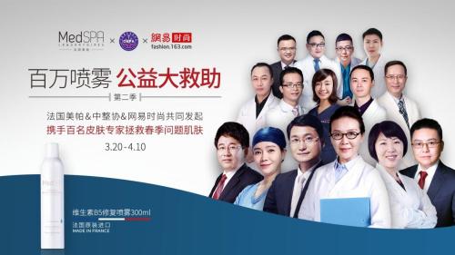 据悉,百万喷雾公益大救助行动去年同期就已经开展,通过专家医生义诊及法国美帕(MedSPA)维生素原B5修复喷雾免费申领方式,累计帮助上万名肌肤敏感人群获得肌肤专业科学修护,在公众和专家医生群体中赢得了广泛的赞誉。本次百万喷雾公益大救助行动作为第二季,除了价值百万的法国美帕(MedSPA)维生素原B5修复喷雾免费在线申领、专家医生定期线上义诊外,还有全国范围内近百名皮肤专家医师开通“1对1”公益面诊免费预约及美肌100%公益沙龙活动。春季问题肌肤人群可以自3月20日至4月10日期间,通过法国美帕(MedSPA)官方微信平台登录百万喷雾公益大救助线上申领及面诊预约平台(H5),免费申领法国美帕维生素原B5修复喷雾或预约专家医生面诊。